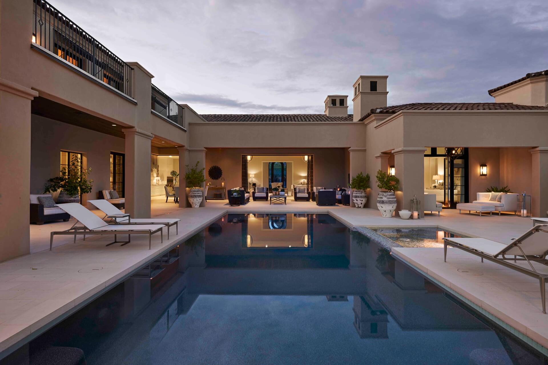 This 10,000+ square foot formal Mediterranean home in the Silverleaf community boasts gorgeous mountain and valley views, best seen from the 360 degree viewing tower. The home includes a master suite with two extra bedrooms, a guest casita that includes a living room and dedicated kitchen, his and hers offices, and LED lighting and solar panels.