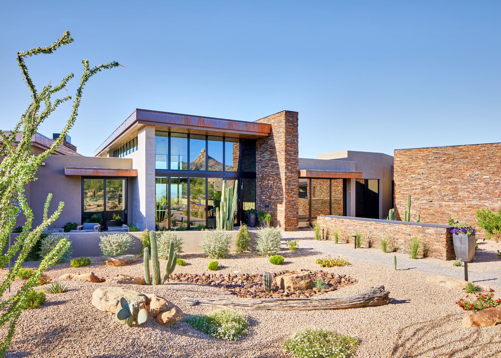 Judges for the 2021 Gold Nugget Awards named PHX Architecture along with Platinum Homes and Holly Wright Design as a Grand Award Winner during the annual competition. This is a huge honor and one of the highest industry awards an Architecture firm can achieve, as the Gold Nuggets honor architectural design and planning excellence and draws entries from throughout the United States and internationally. The award-winning project was designed by firm President, Erik B. Peterson and Creative Director, Stuart Jon Traynor. A complete collaboration of expert design minds, the project named “Desert Contemporary Residence”, was designed by an award-winning team of PHX Architecture, Platinum Homes (Stephanie Fox) and Holly Wright Design. The firm also additionally earned Merit honors for their LA Contemporary Hillside Residence in the On-the-Boards category and Modern Desert Oasis in the Custom Home 4,000 – 6,000 sq. ft. category.