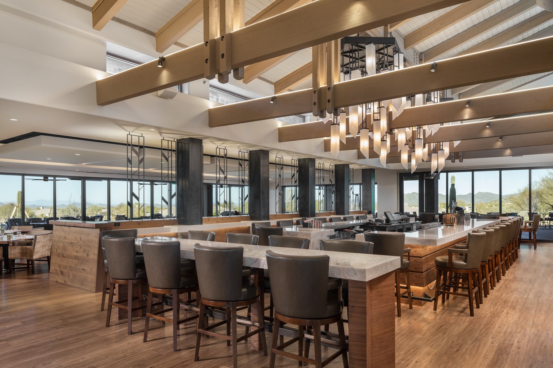 PHX was tasked with the Clubhouse’s remodel that reached completion in early 2019. The entire renovation included adding an indoor bar, remodeling the restaurant, kitchen, private dining, banquet area, outside patio, bathrooms and lobby space. The design was led by Erik as well as Andrea Lucarelli, Architect II.