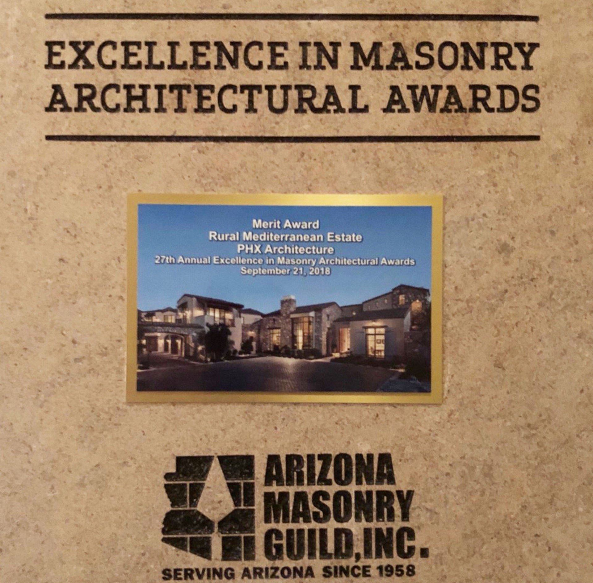 The two awards were a Merit Award for Residential and the Grand Award for Craftsmanship! Thanks to the team of Salcito Custom Homes and Sutter Masonry for their efforts in achieving this excellence. Accepting on behalf of PHX was Principal Scott Carson. The award reception took place at the Scottsdale Hilton Resort in September.