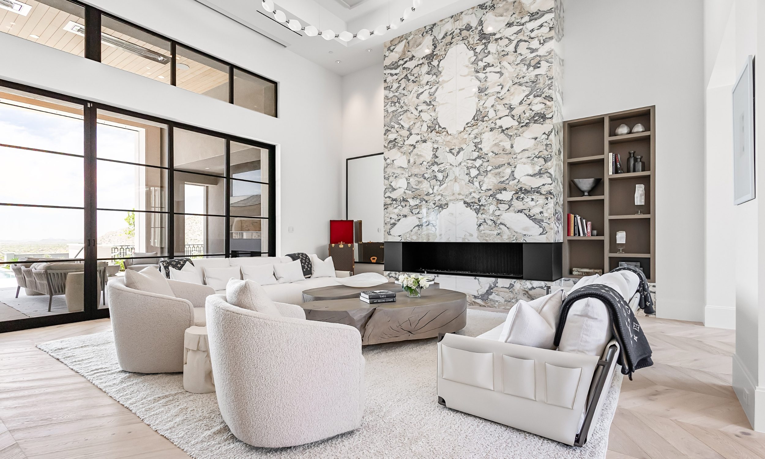 A warm modern estate is defined by intentional design, natural materiality, and elevated craftsmanship. Thoughtfully designed to harmonize architecture with landscape, the residence is anchored by hand-applied plaster finishes, expansive white oak detailing, and an extraordinary use of natural stone–each element selected for both beauty and longevity. Clean lines are softened by warm textures, while soaring 11-foot ceilings and 12 strategically placed skylights flood the home with natural light. A natural connection to the resort-caliber grounds creates an atmosphere that feels both refined and deeply inviting, designed for grand entertaining and quiet retreat. The floor plan is equally considered, offering a private owner’s wing designed as a true sanctuary, intentionally set apart for privacy and quiet, with spa-inspired bath spaces finished in natural stone. The guest wing features two master-sized suites, each complete with its own living room–ideal for extended stays or multigenerational living. A dedicated wellness studio provides the perfect space for Pilates, yoga, or a private gym, further reinforcing the home’s retreat-like sensibility.