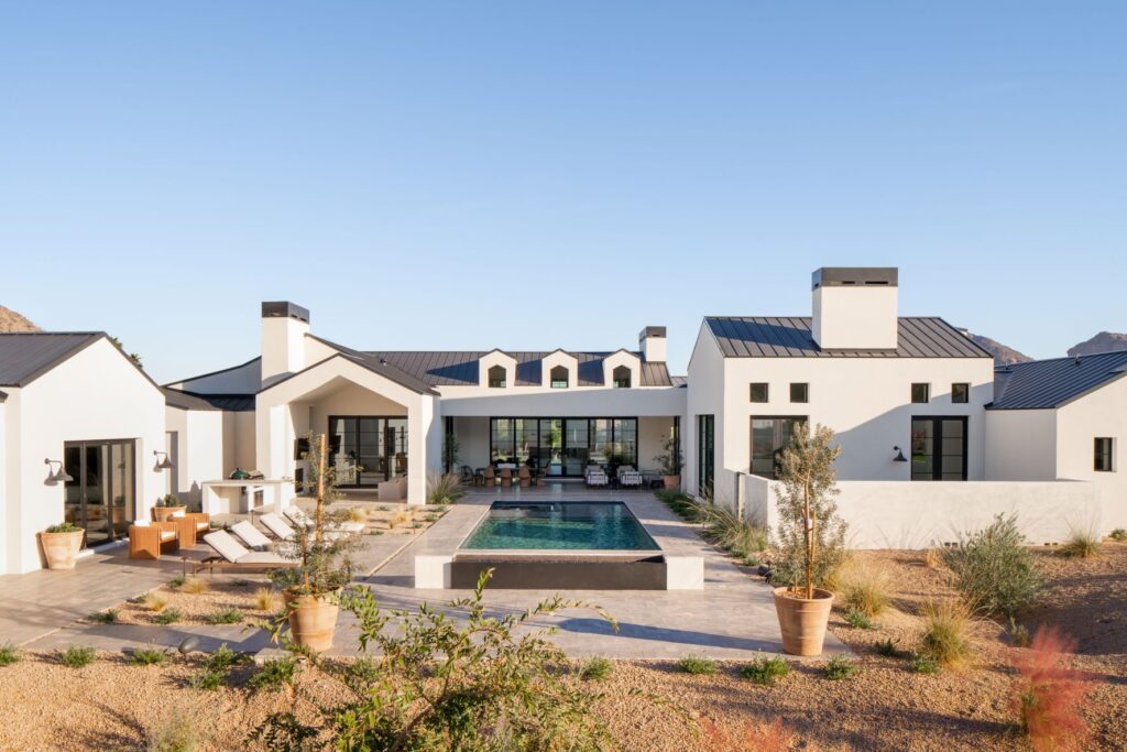 Quartz Valley is a residence located in Paradise Valley, Arizona. Stretched across a 44,351 SF lot, this modern home is breathtaking. Pearly white exterior with a gorgeous pool and lounge area in the back, looking very striking in the Arizona desert.