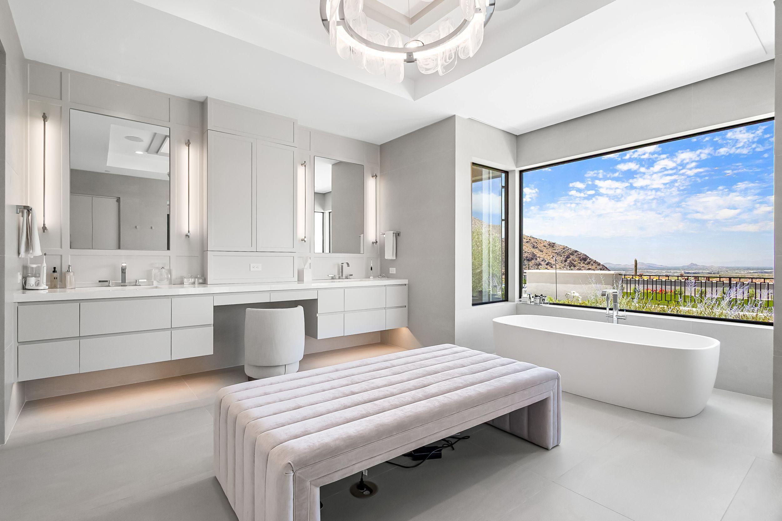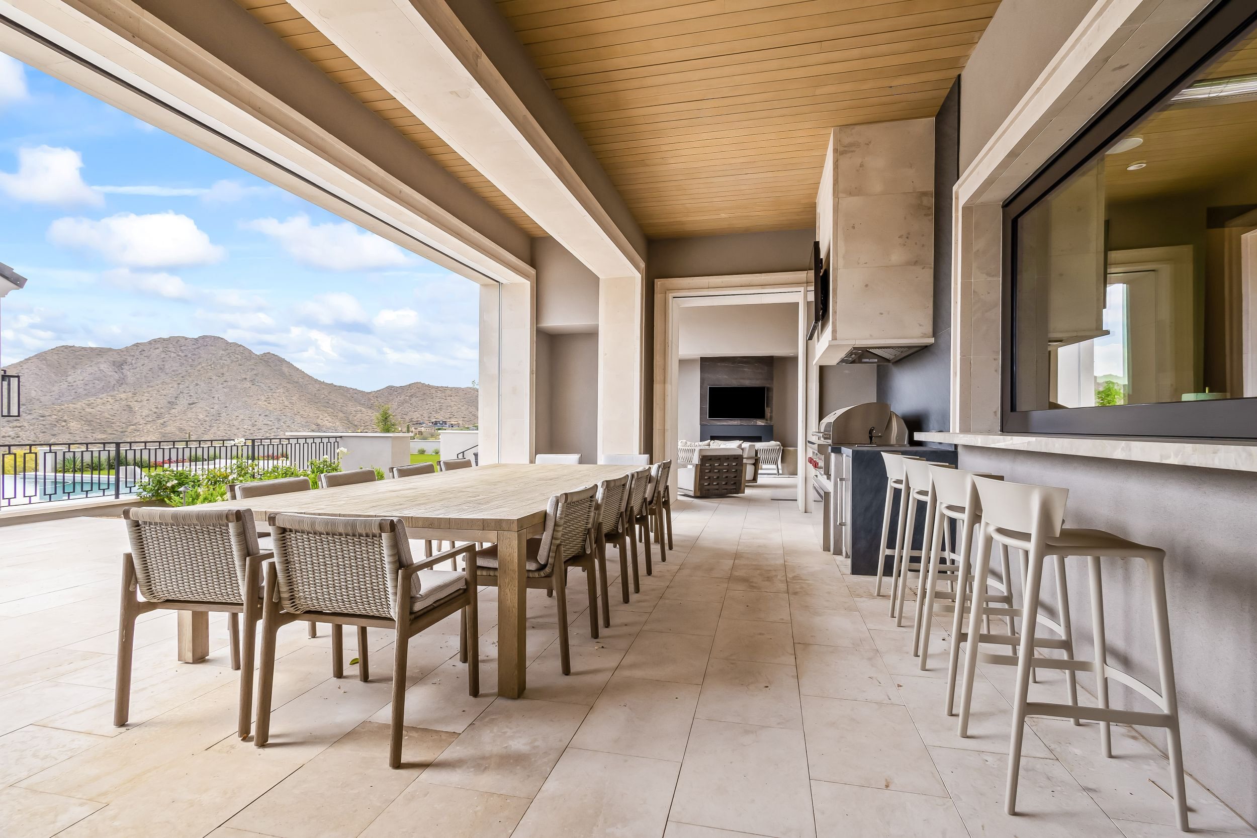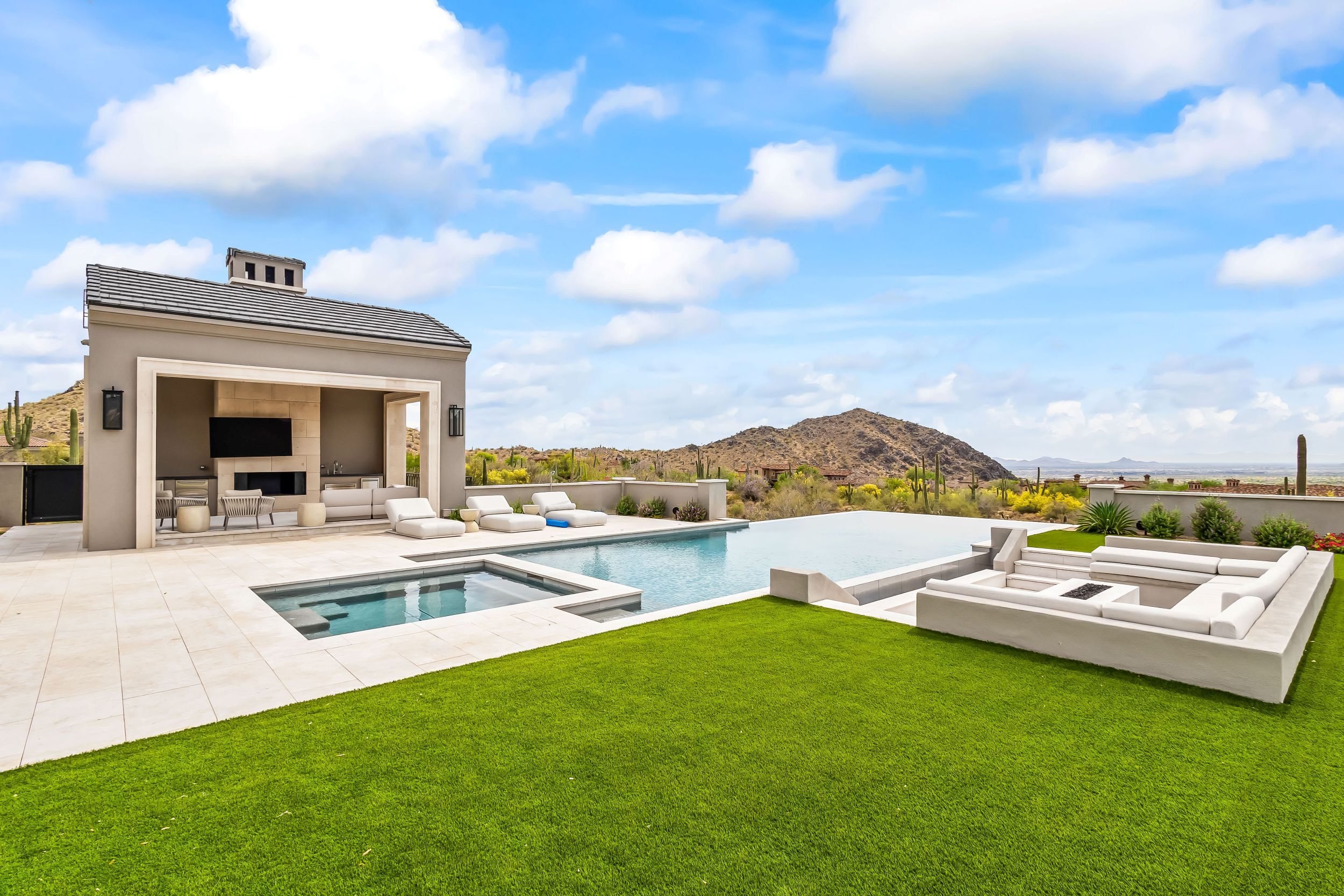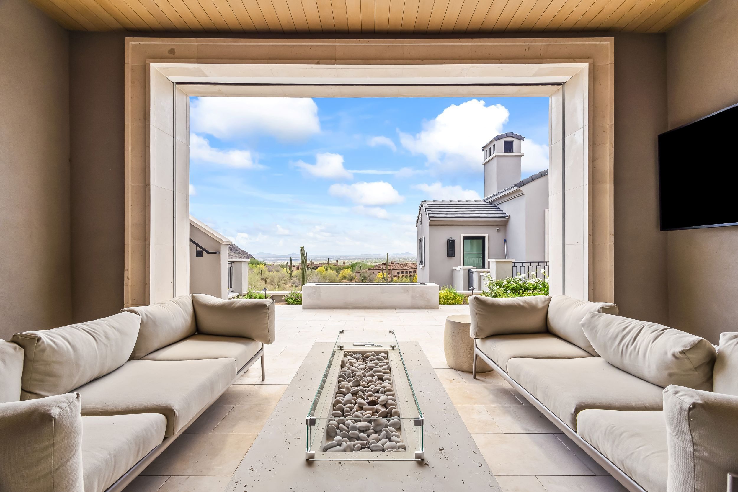 The resort‑style exterior environment is anchored by a negative‑edge pool and spa that visually merge with the surrounding landscape, while a covered cabana with a dedicated pool bath enhances functionality. Positioned moments from Scottsdale’s premier dining, shopping, and resort destinations, this estate represents a synthesis of architectural rigor, luxury, and context‑driven design within one of Arizona’s most coveted communities.