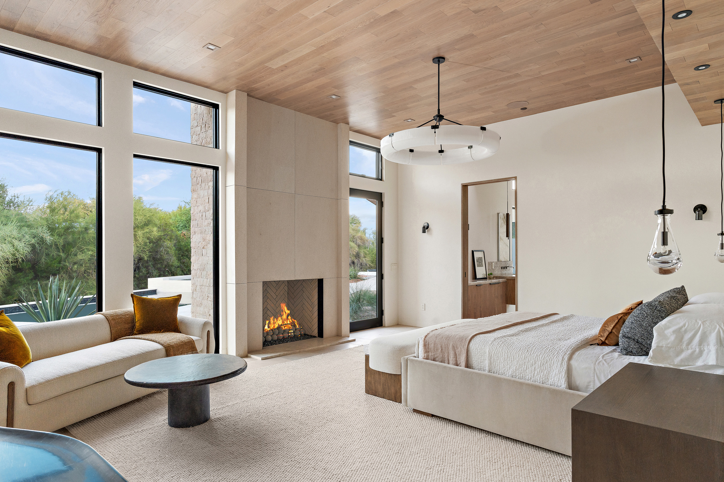 In the primary suite, mornings begin beside a limestone hearth and end with the stillness of private Zen gardens. Guests retreat to a secluded haven of their own, complete with kitchens, terraces, and endless desert horizons.