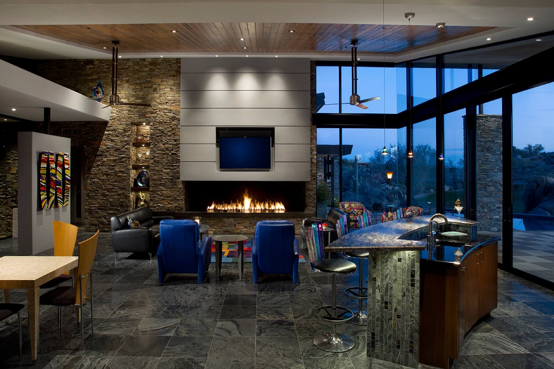 This recently completed home can be seen in the Spring 2014 edition of Modern Luxury Scottsdale Magazine. This contemporary home fits in with its surroundings in the Desert Mountain Community and was designed to incorporate the beautiful desert views. At nearly 6,000 square feet, this home hosts four spacious bedrooms, and plenty of amenities for entertaining.