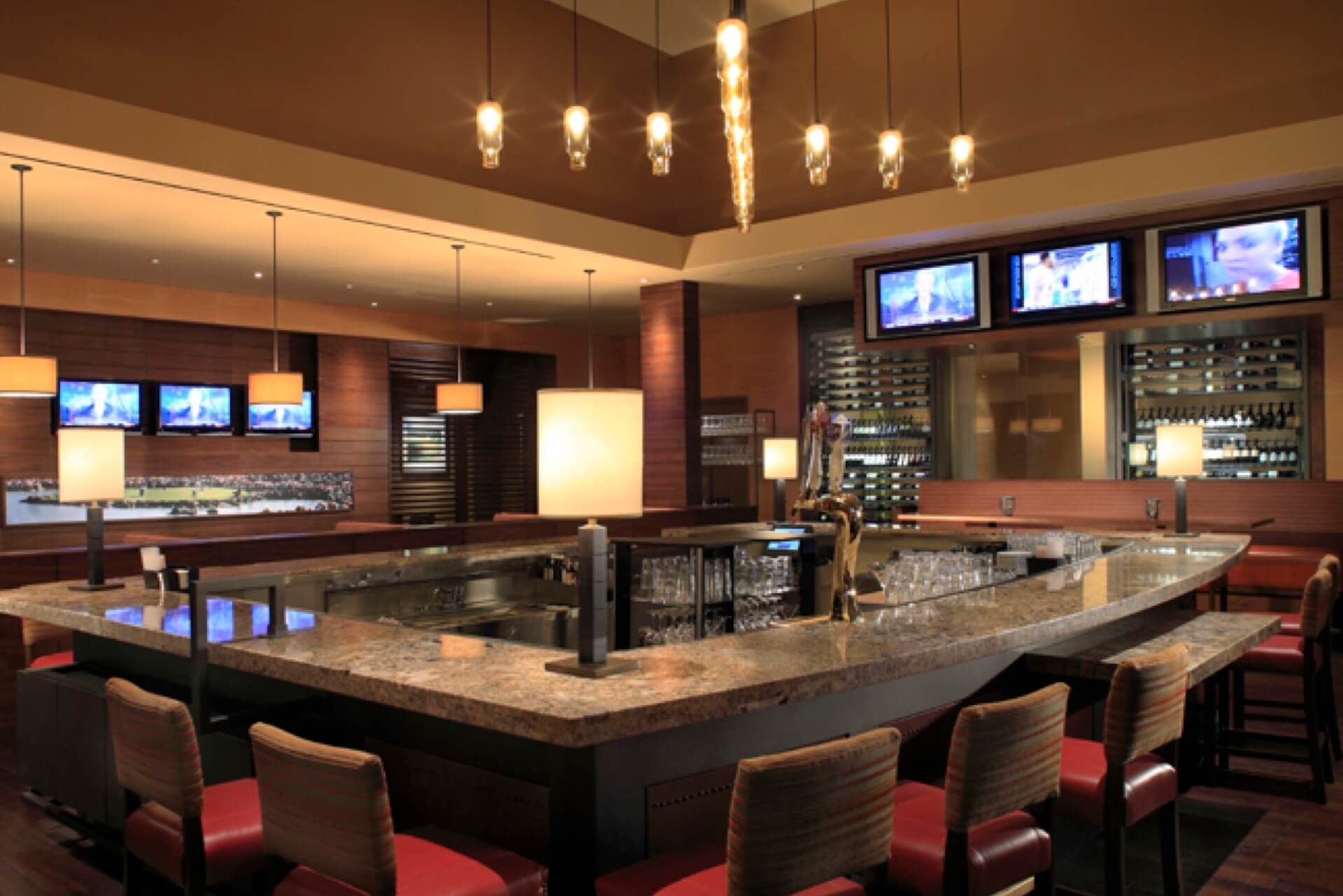 Along with the remodel of the private clubhouse, PHX ARCHITECTURE also worked on the Stadium Clubhouse. The design included a grab ‘n go market bar, casual dining lounge, private dining room, event hall, and patio spaces. The Stadium Course was designed by the legendary Pete Dye. The refreshed space gives a more open and modern feel while paying homage to golf greats.