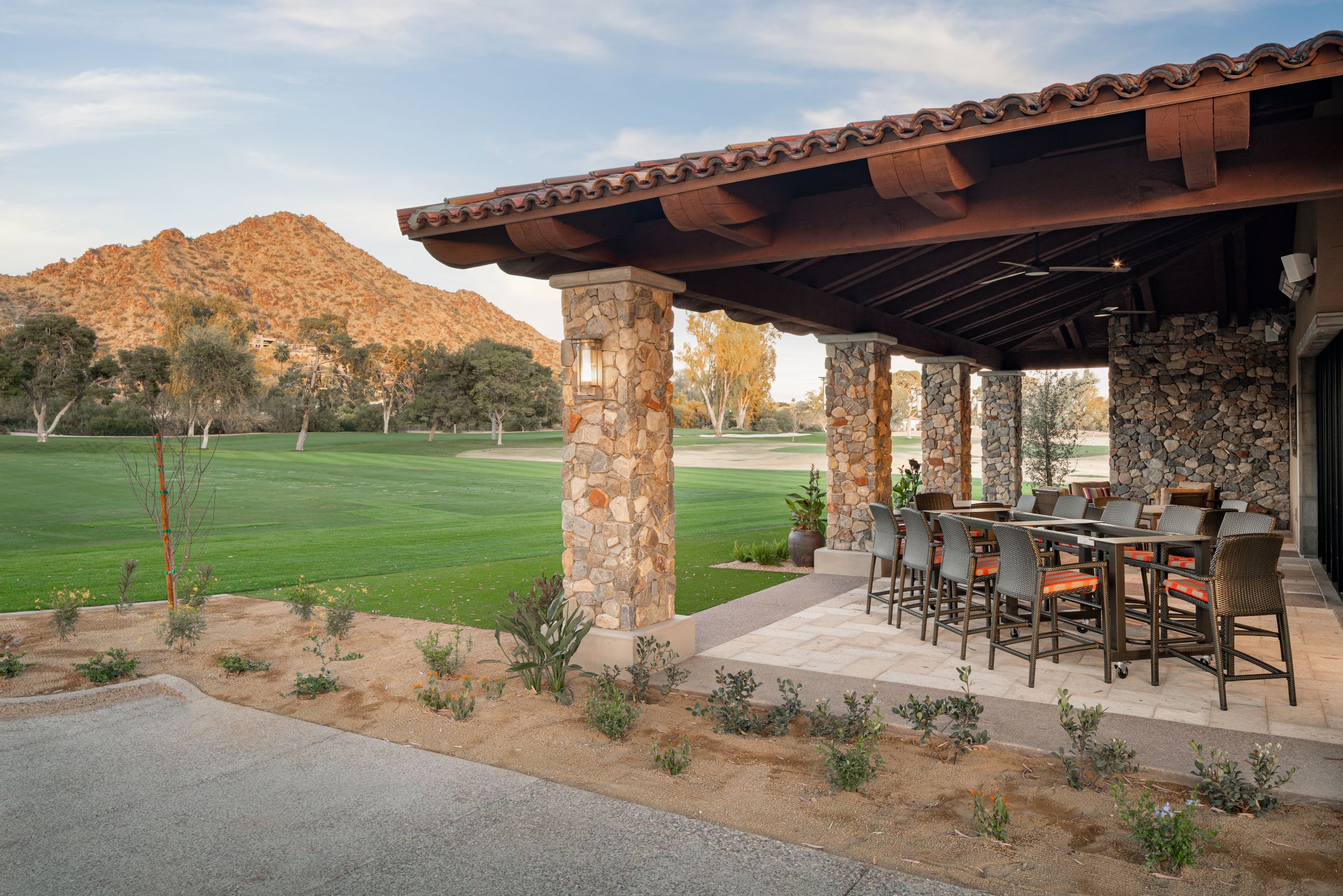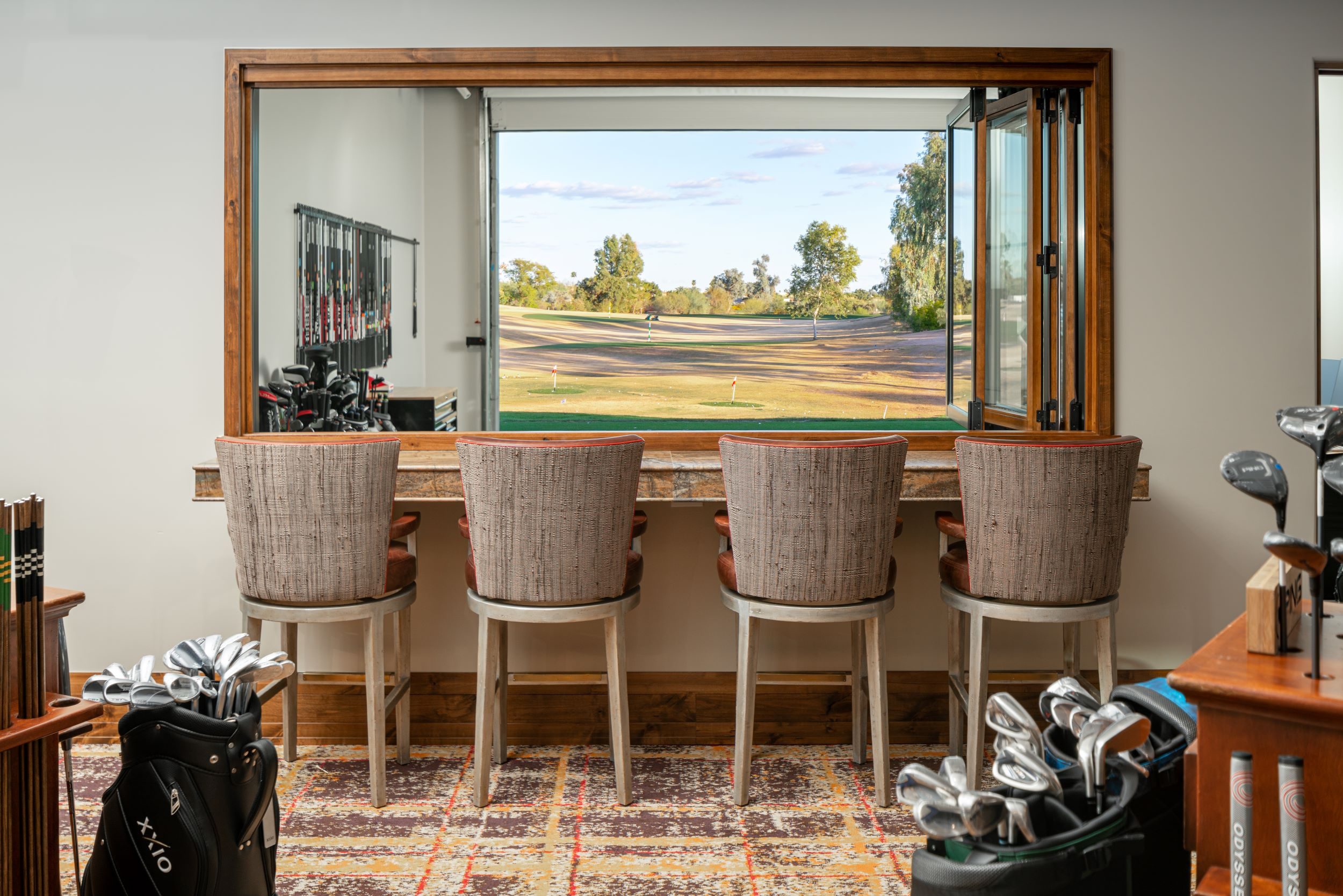 Framed in rich, dark wood, the interior balances warmth with modern sophistication, while sleek, contemporary lighting enhances the ambiance. A bar window opens to the course, inviting members to relax, take in the Arizona sunshine, and enjoy a front-row seat to the game.