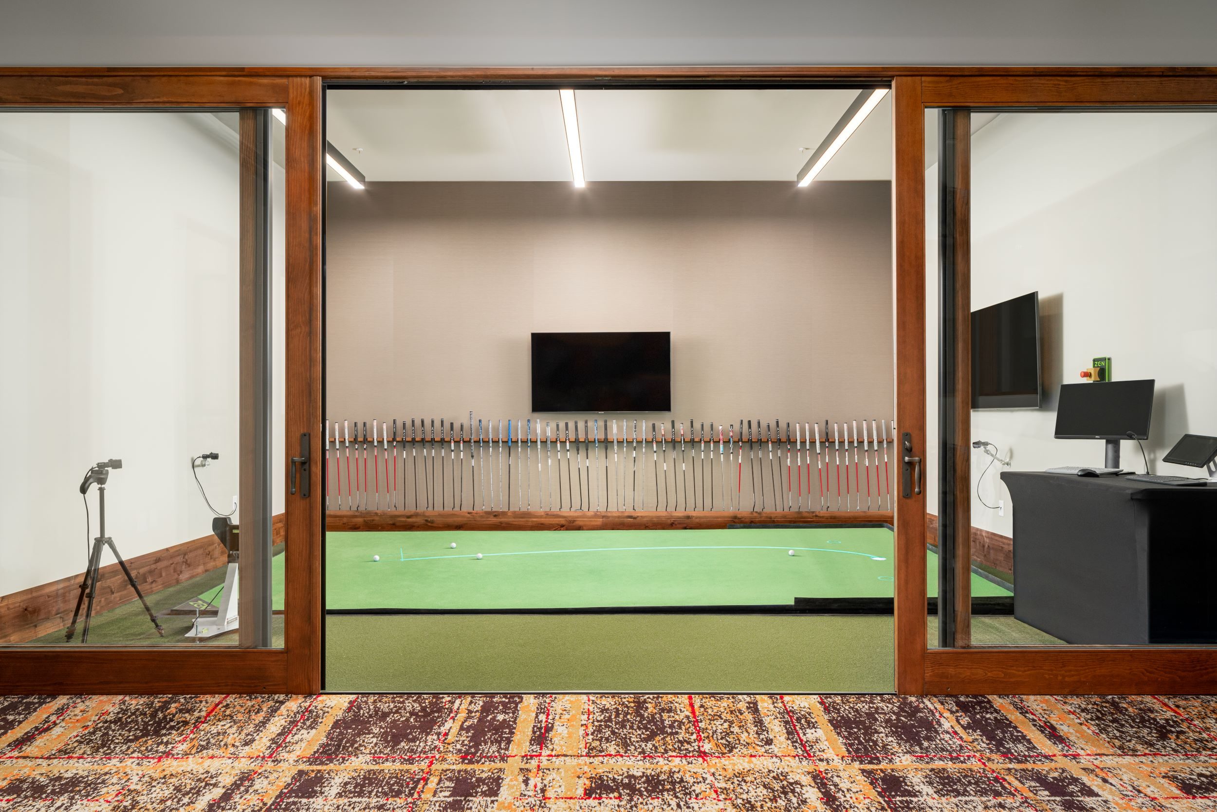 Designed with both form and function in mind, the space is equipped with the latest golf technology, including SAM PuttLab, allowing members to refine their skills and experience world-class courses from around the globe. The design keeps golfers at the forefront, emphasizing clean lines, open space, and effortless functionality to accommodate bags, equipment, and seamless movement throughout.