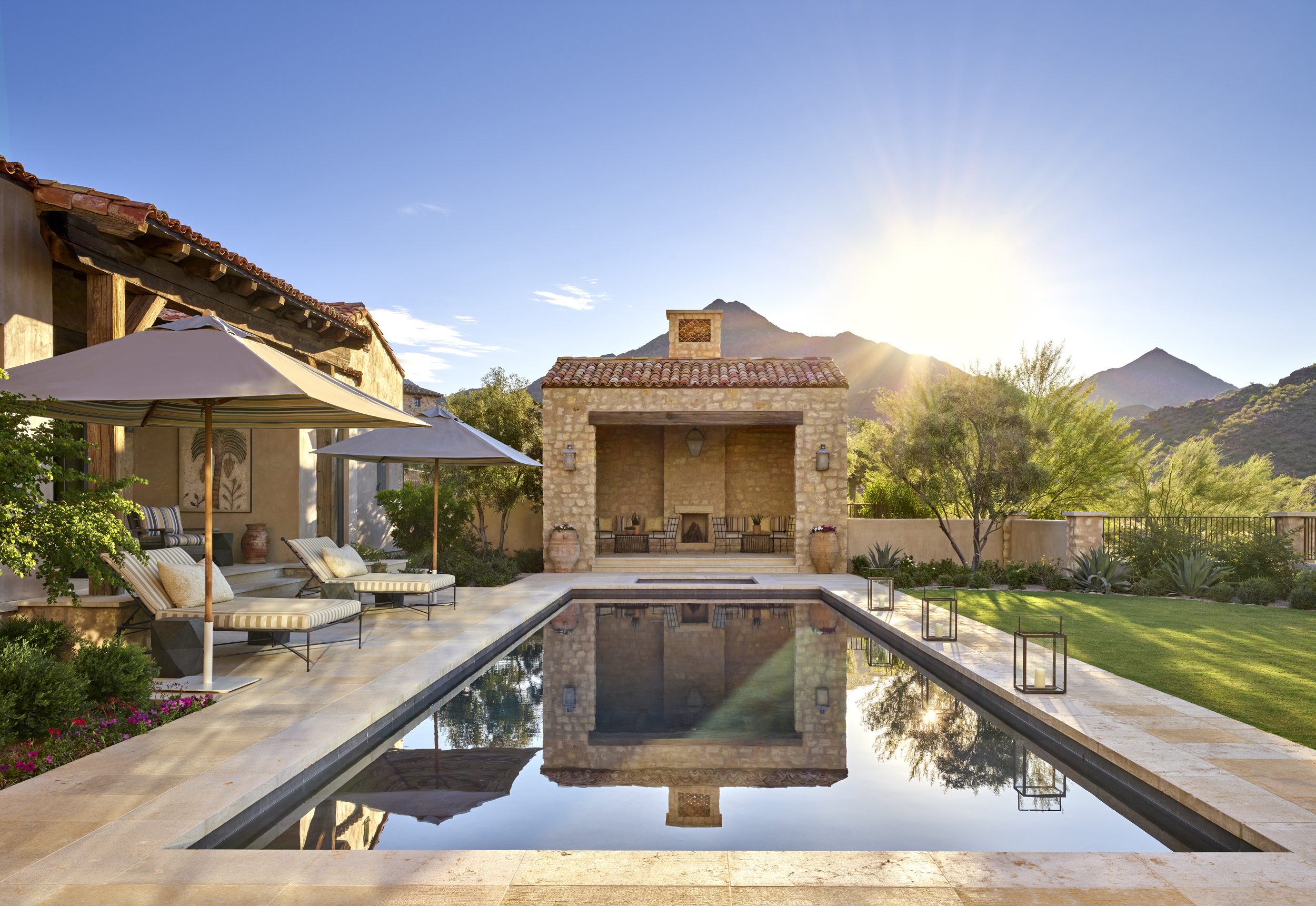 Set into the foothills of North Scottsdale, this custom home presents as a refined interpretation of Spanish Colonial architecture, yet contemporized to suit modern desert living. Carefully oriented to capture sweeping views of the surrounding mountain peaks, all while fostering a seamless relationship between indoor and outdoor spaces. Abundant natural light and an intuitive, highly livable floor plan make the home equally suited to year-round living or as seasonal retreat in Arizona’s distinctive climate.
