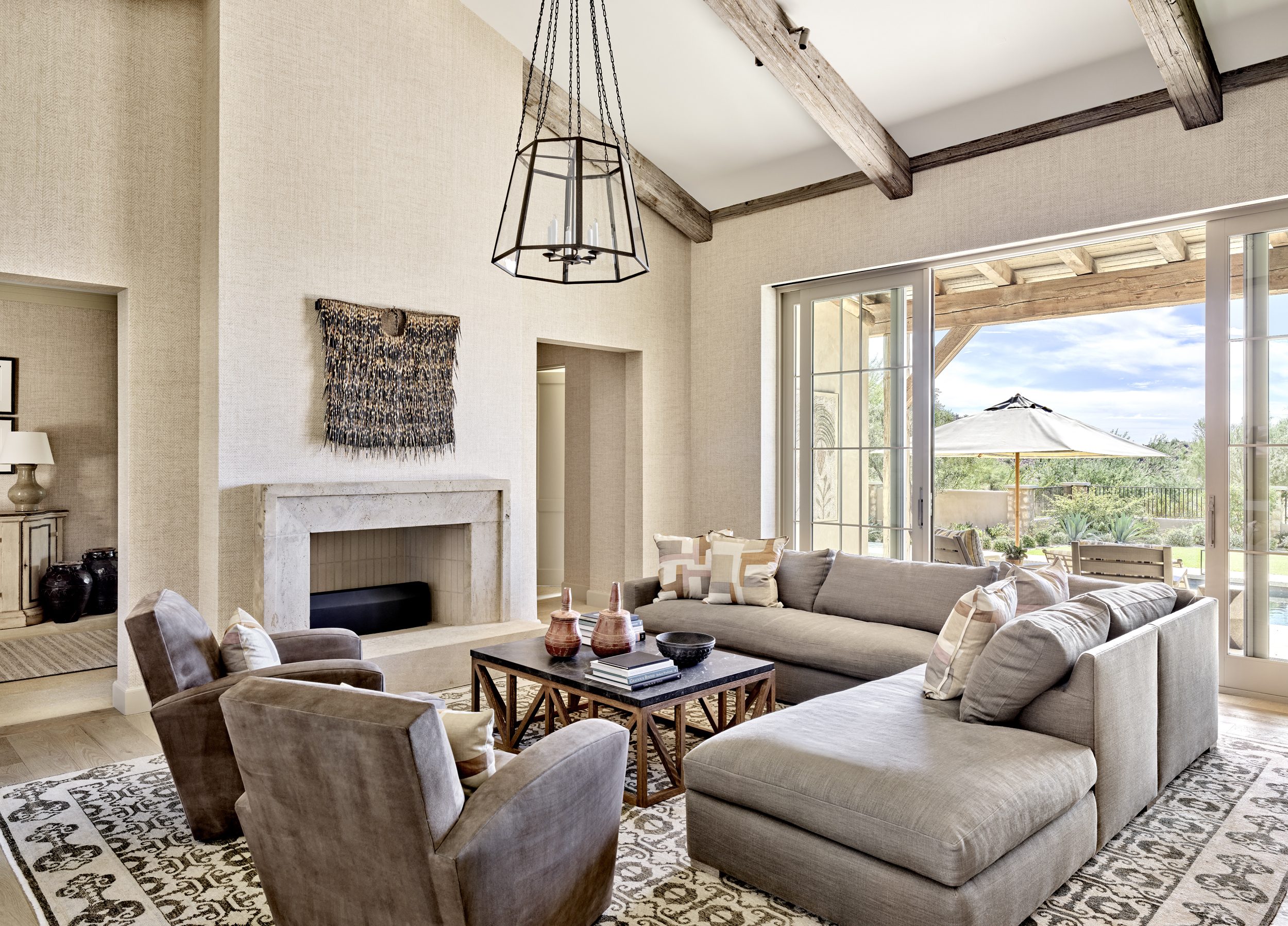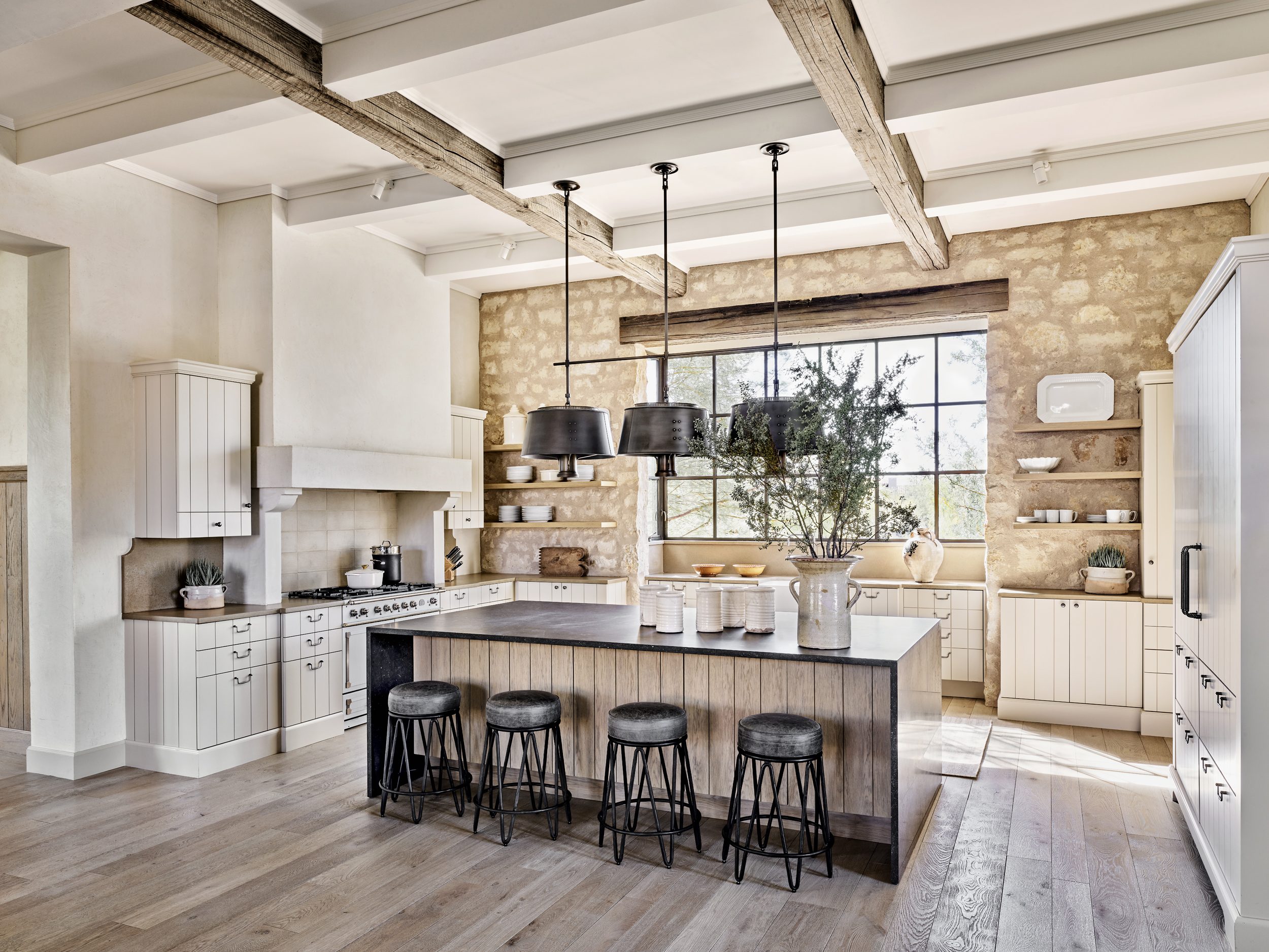 Architecturally, the design draws from rural Mediterranean precedents that resonate with the Silverleaf community while subtly incorporating contemporary influences. The exterior palette is grounded in stone, smooth stucco, and reclaimed wood, lending both texture and authenticity to the massing. Inside, a warm, neutral material language prevails: limestone surfaces, wide-plank wood flooring, hand-applied wall plaster, and reclaimed timber beams establish continuity between architecture and interior design.