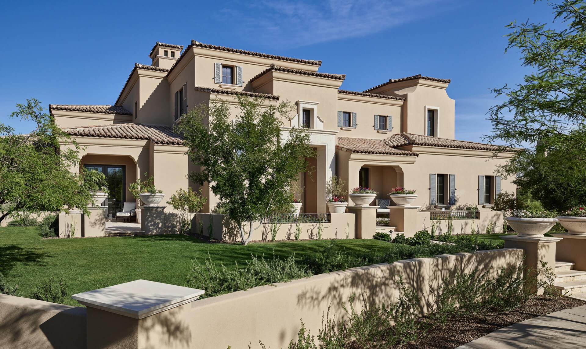 With eastern views of a prestigious golf course and the McDowell Mountain on one side of the home and city views on the other, this residence rests in The Parks neighborhood of North Scottsdale’s Silverleaf community. The couple’s master suite opens out onto the pool and spa patio, while a cabana on the north side of the pool is positioned to shield the area from neighbors. Every room of this unique design flows into one another and offers an abundance of natural light bringing the outdoors in.