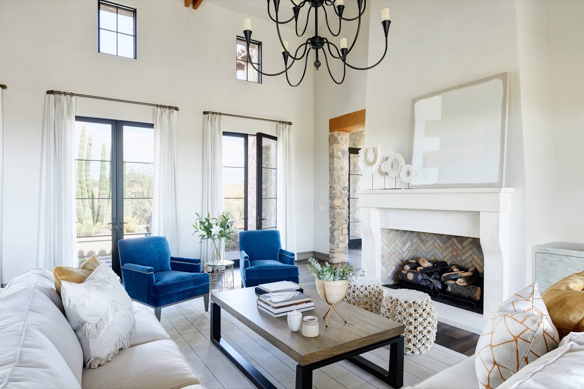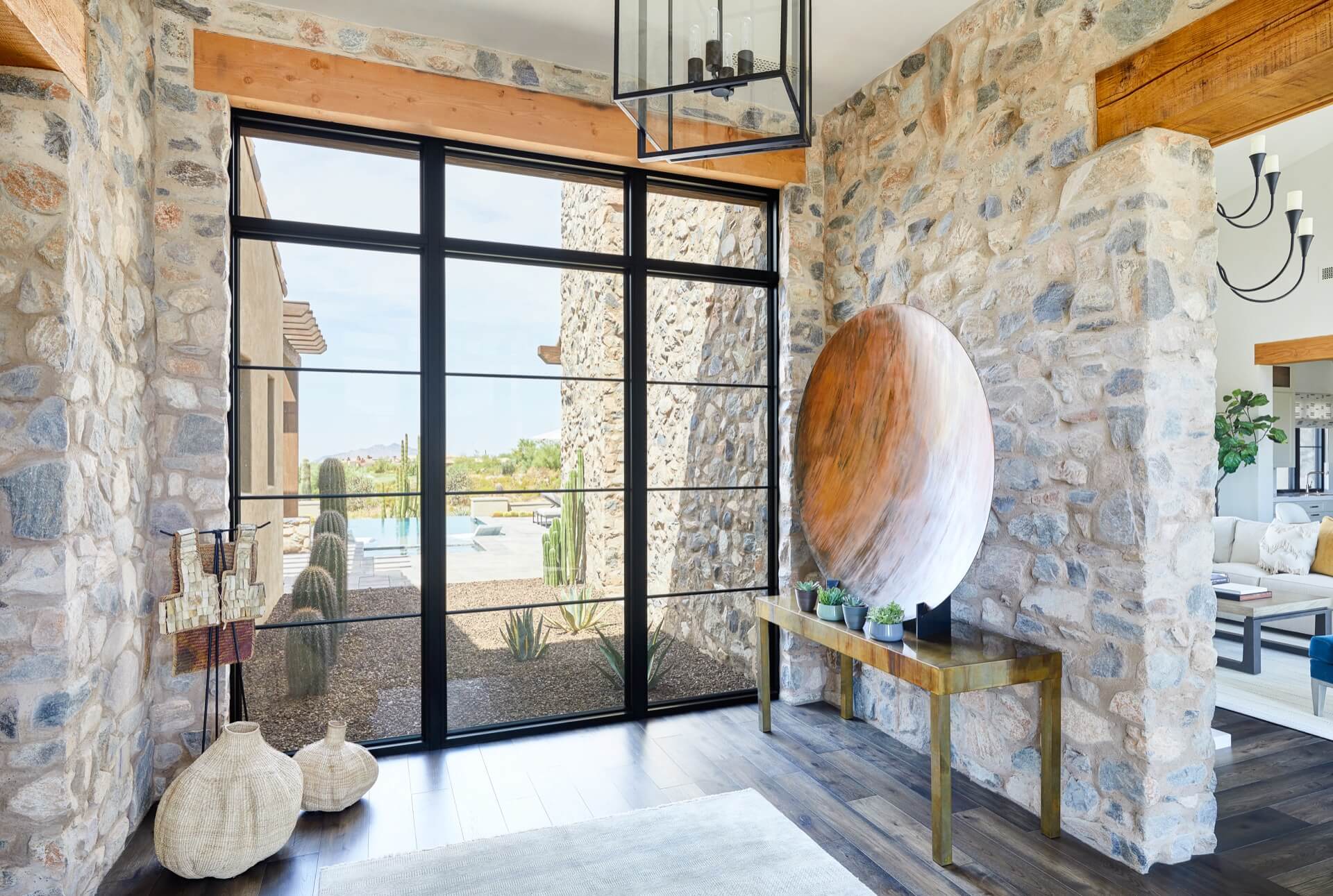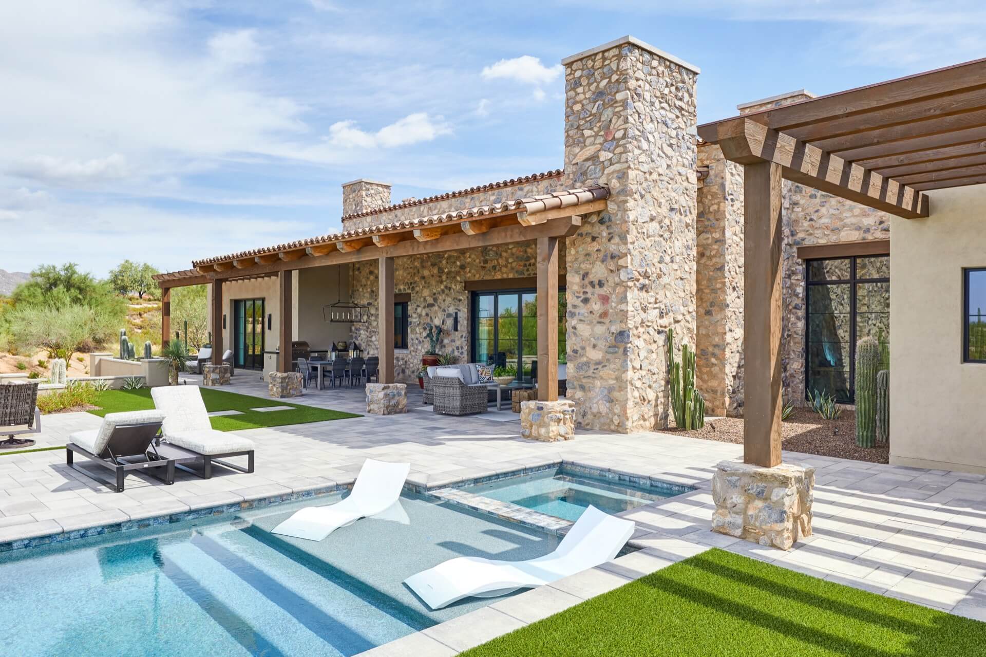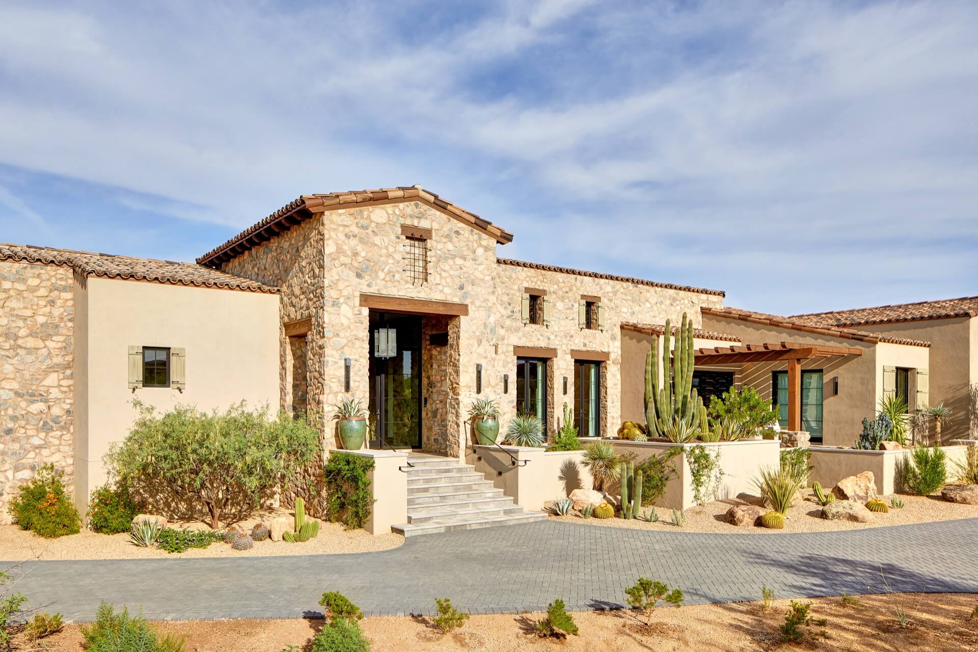The home was built with natural materials, including a mix of stucco and stone with a color and texture that feels very familiar to the desert. Light tones throughout the home mixed with pops of color make for an inviting, warm vibe that gives the large home a very intimate feel; perfect for entertaining family and friends.
