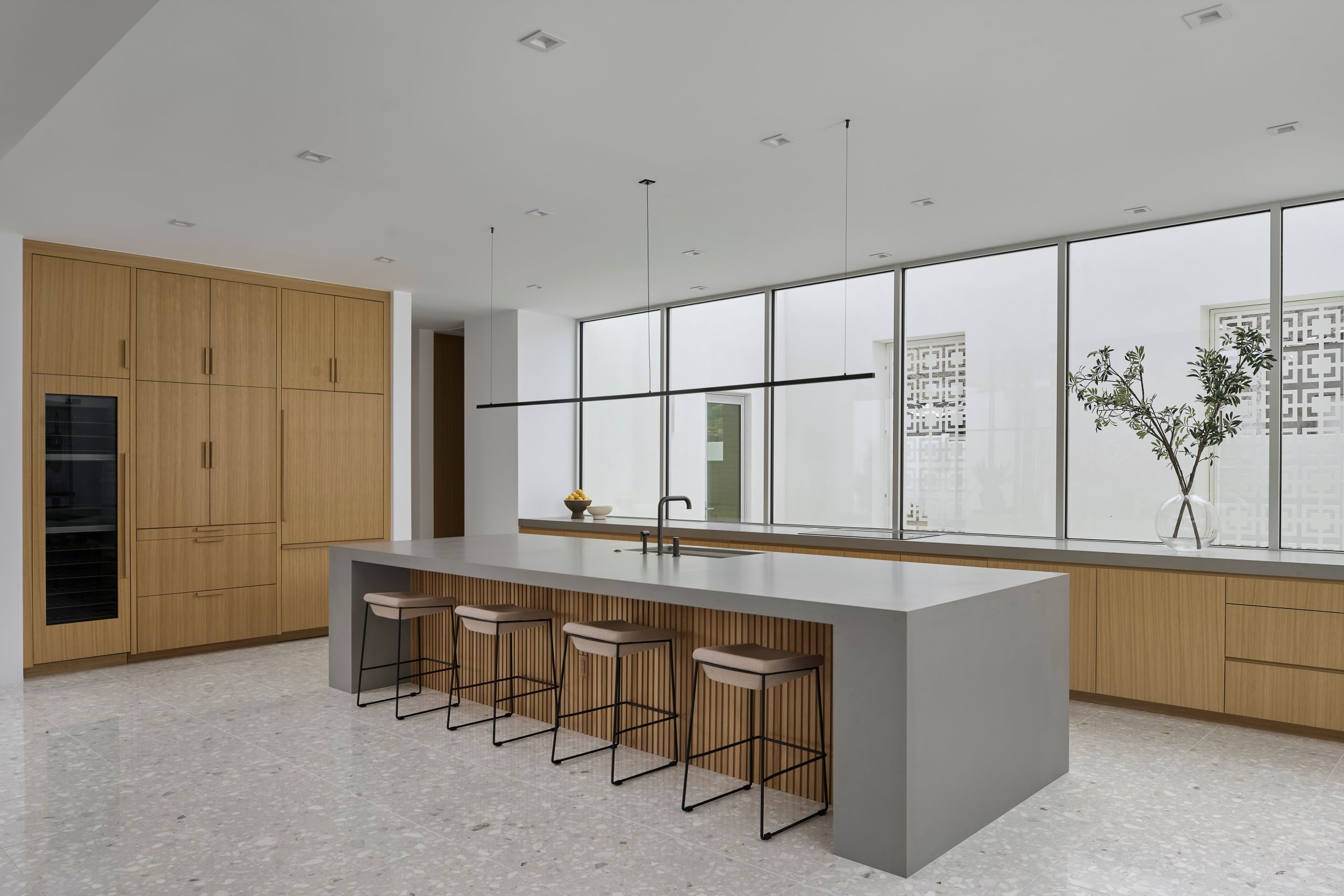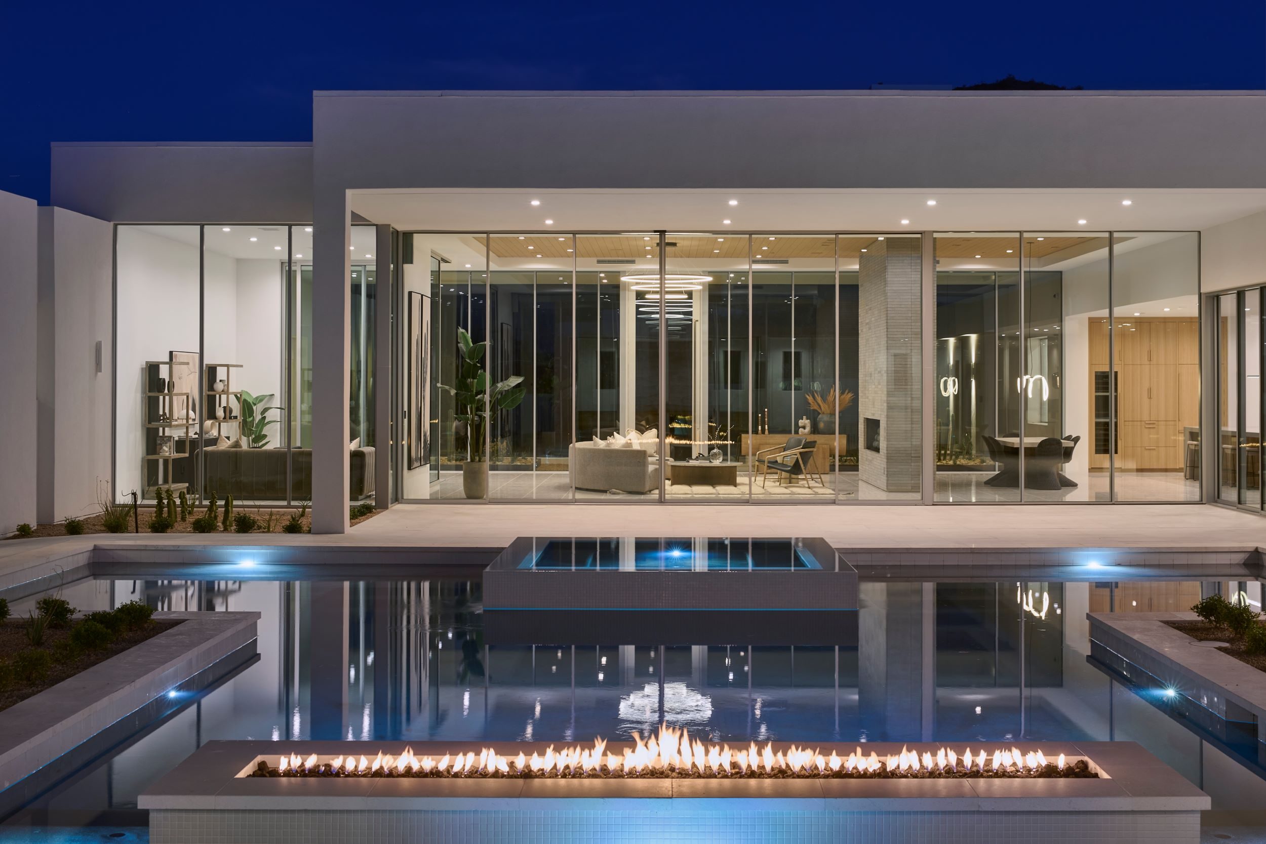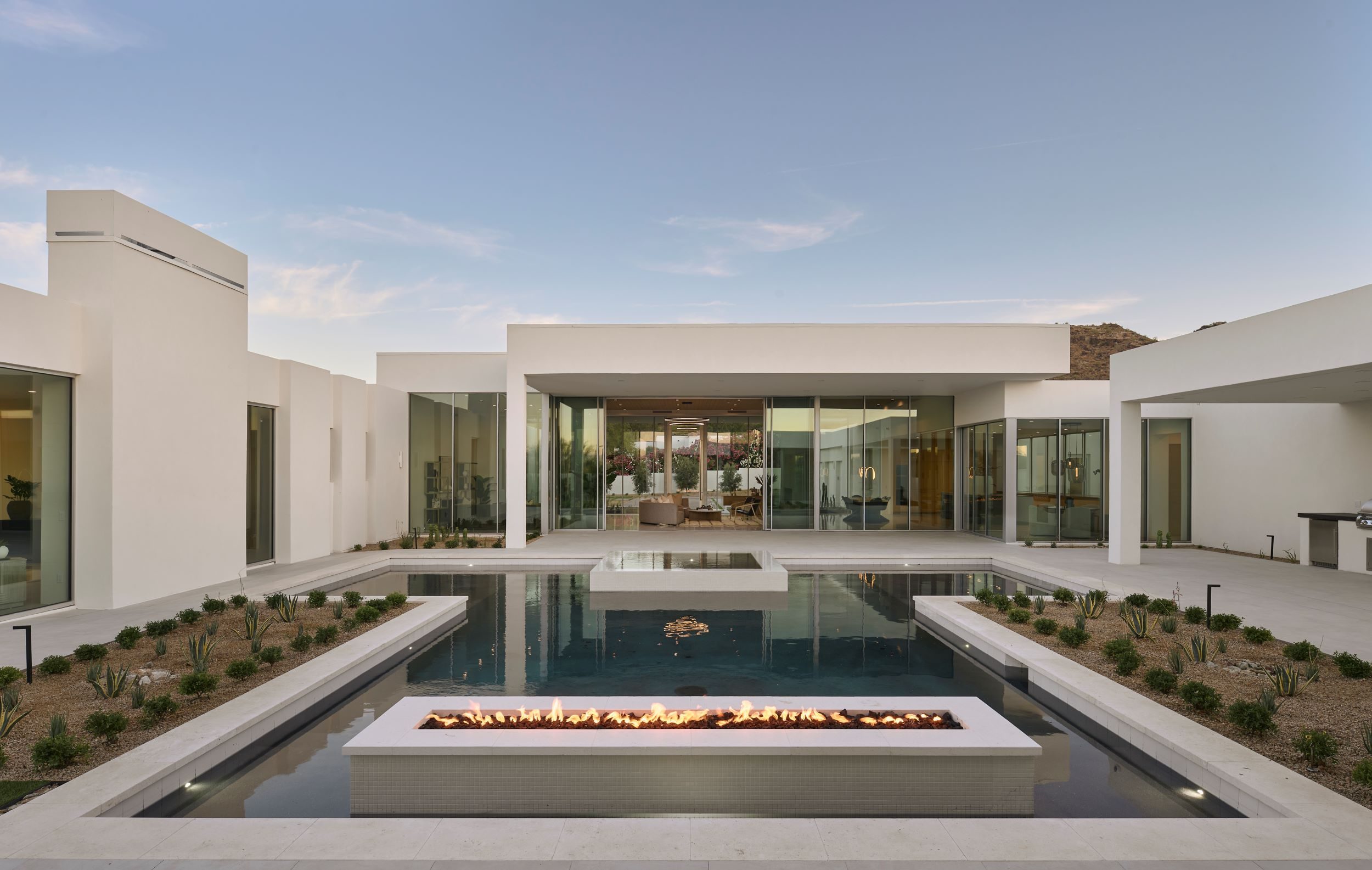 Our newest luxury custom home located in Paradise Valley stands boldly in stature and aesthetic with panoramic views and understated lines. The living area is graced with expansive 14-foot floor-to-ceiling and wall-to-wall windows, seamlessly merging the allure of the desert lifestyle with the interior space. Meticulous attention has been given to every facet of this minimalist arrangement, ensuring that each element is discreetly stored yet fully operational. The architectural lines of the residence bestow a symmetrical and exquisite play of light, while sweeping views from every vantage point are beyond compare. Additionally, the inclusion of a dual kitchen layout serves as a delightful advantage for those who frequently host gatherings, allowing them to uphold the residence’s aesthetic appeal even during events.