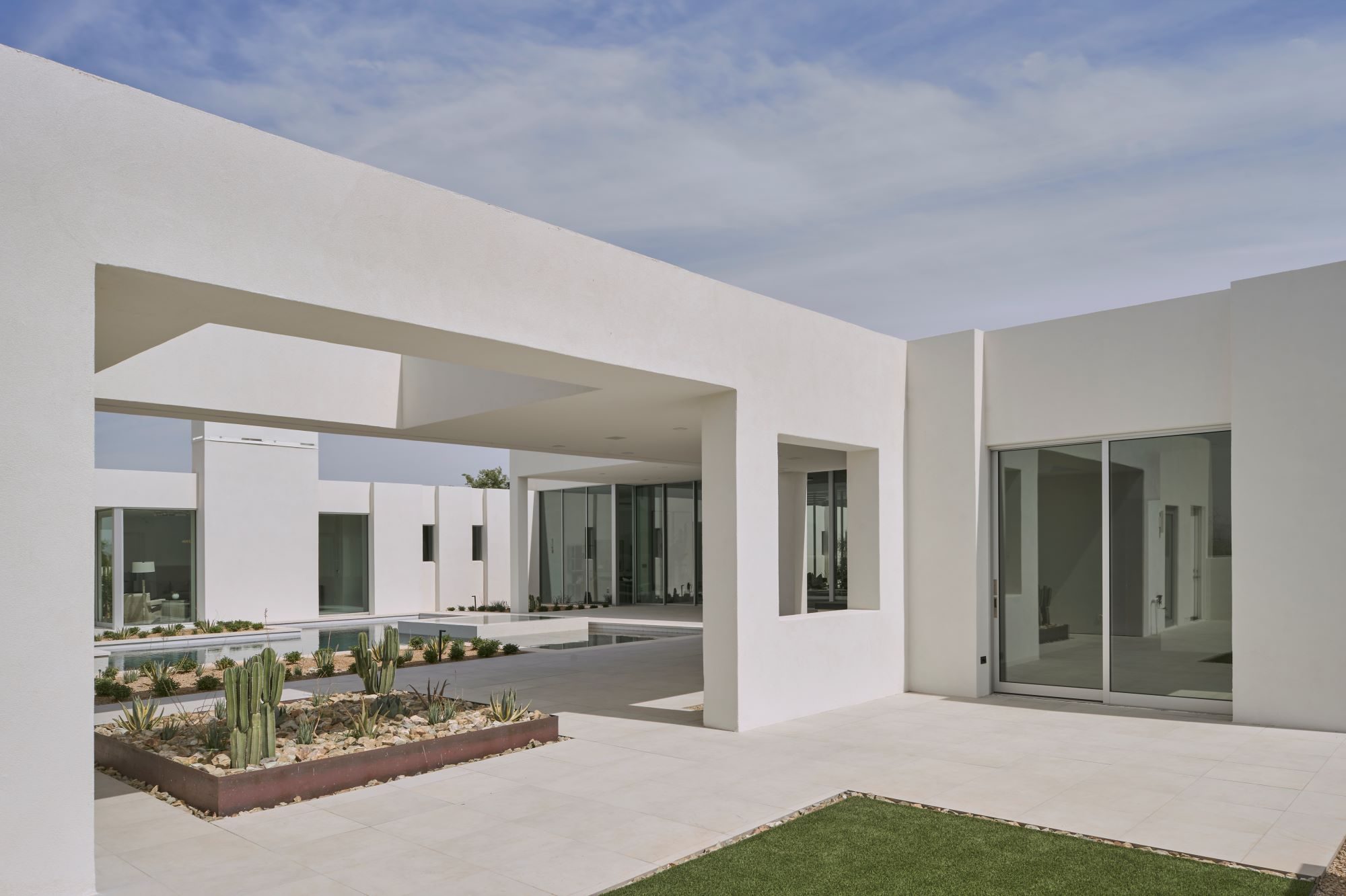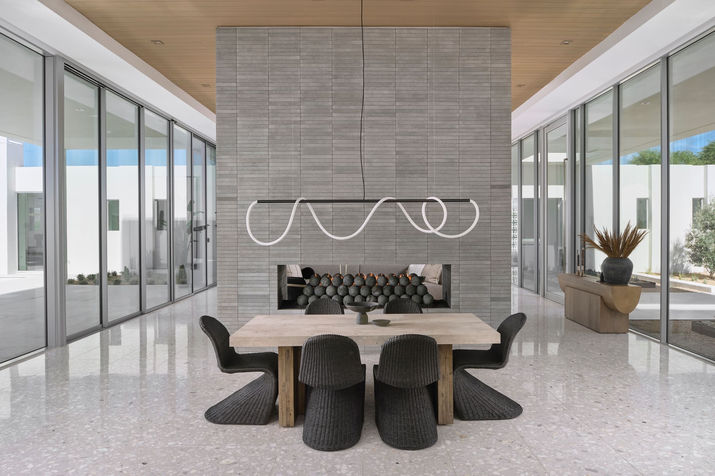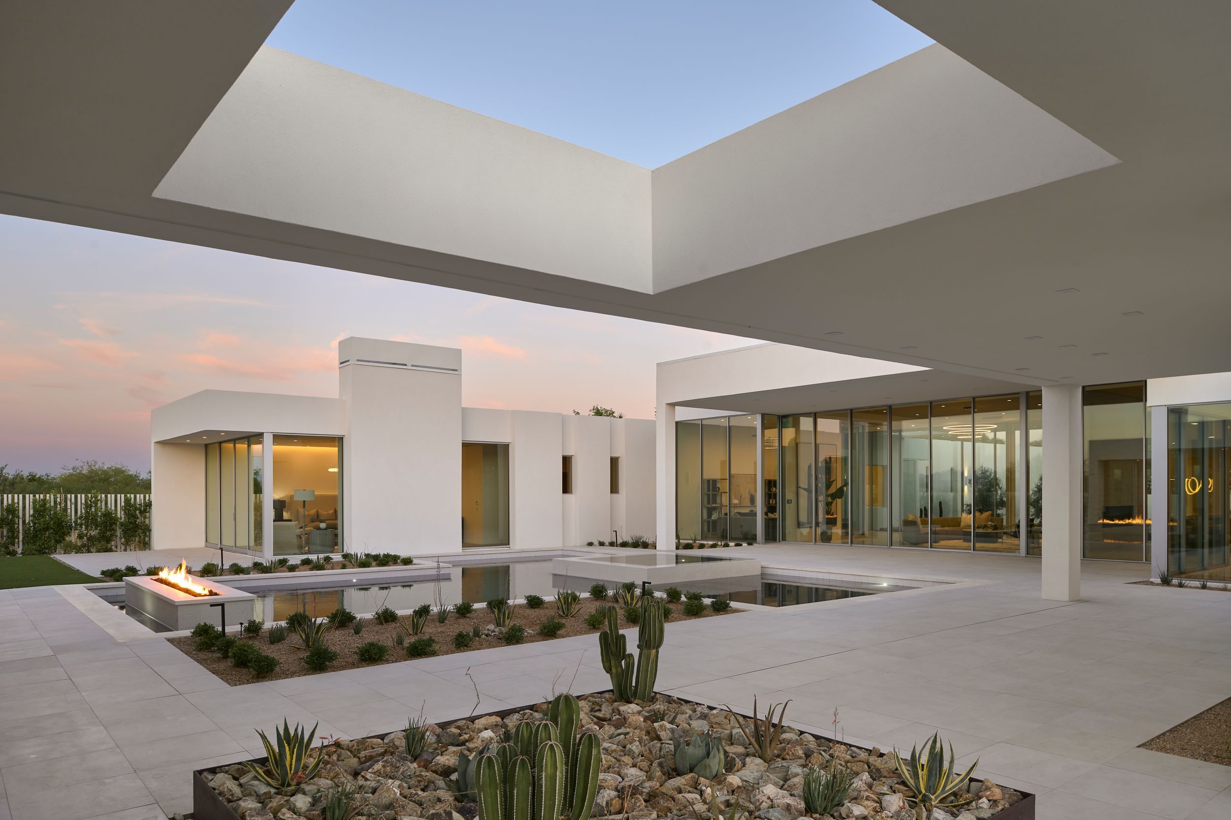 Our newest luxury custom home located in Paradise Valley stands boldly in stature and aesthetic with panoramic views and understated lines. The living area is graced with expansive 14-foot floor-to-ceiling and wall-to-wall windows, seamlessly merging the allure of the desert lifestyle with the interior space. Meticulous attention has been given to every facet of this minimalist arrangement, ensuring that each element is discreetly stored yet fully operational. The architectural lines of the residence bestow a symmetrical and exquisite play of light, while sweeping views from every vantage point are beyond compare. Additionally, the inclusion of a dual kitchen layout serves as a delightful advantage for those who frequently host gatherings, allowing them to uphold the residence’s aesthetic appeal even during events.