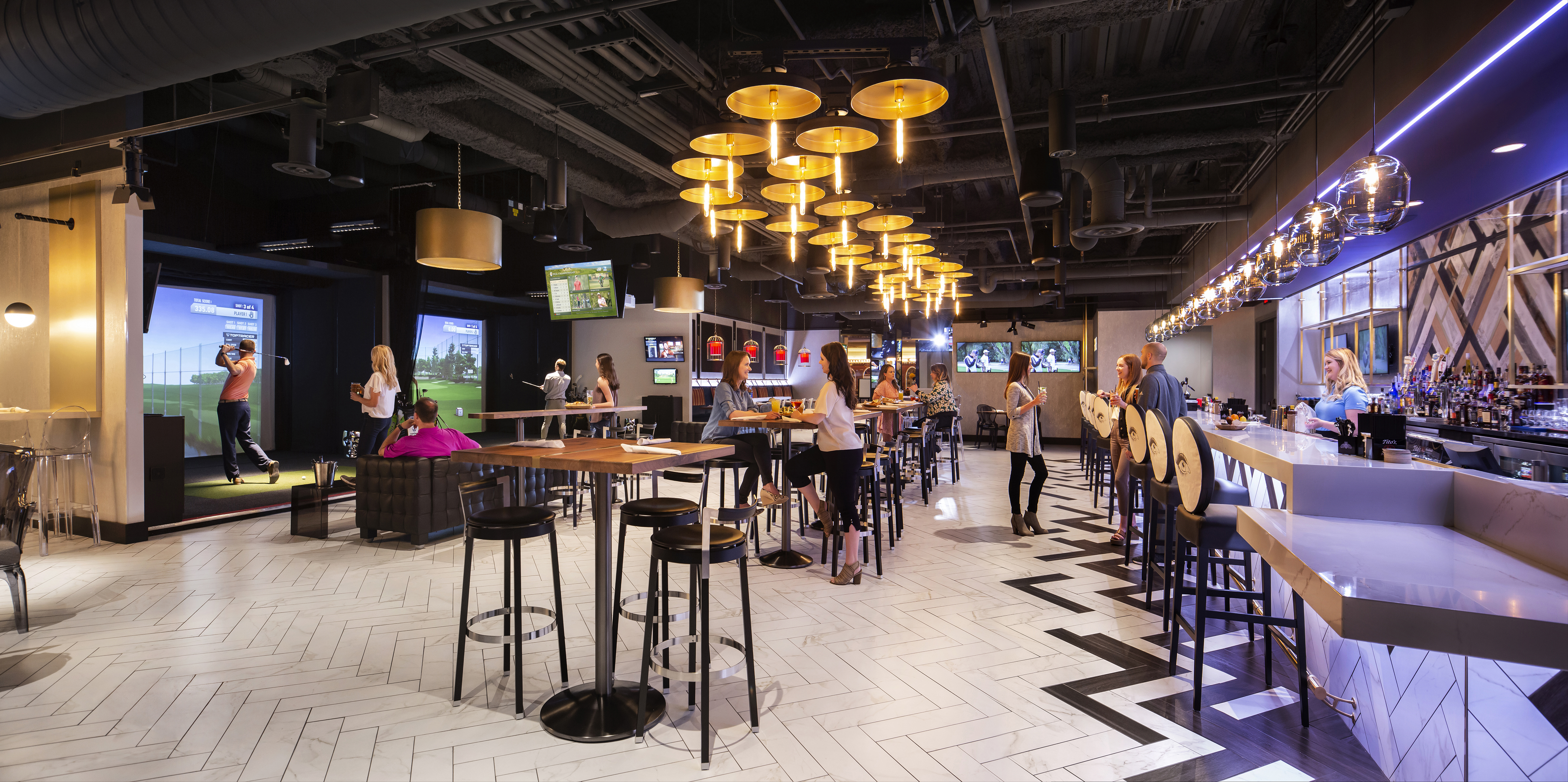 PHX was brought in to design one of the most recent additions to the growing list of TopGolf Swing Suite locations. The space includes four hitting bays equipped with state of the art simulator equipment, which are set up for golf on several real courses as well as other sports like football, soccer and baseball. The facility includes a VIP membership area with lockers and a private bar; the main area also includes a “speakeasy” themed bar and other dining options. We designed the the space to be hip, trendy, innovative and also fun.